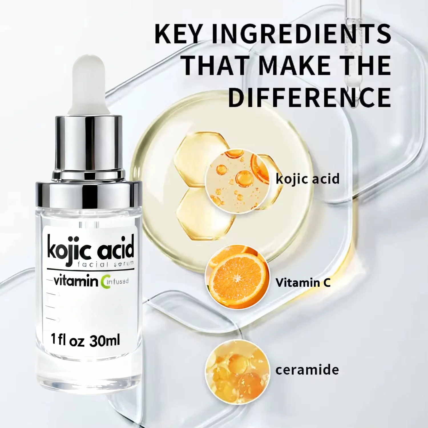 Radiant Rejuvenation 30ml Organic Vitamin C Kojic Acid Serum for Anti-Wrinkle Hydration Youthful Face Improve Skin Dullness